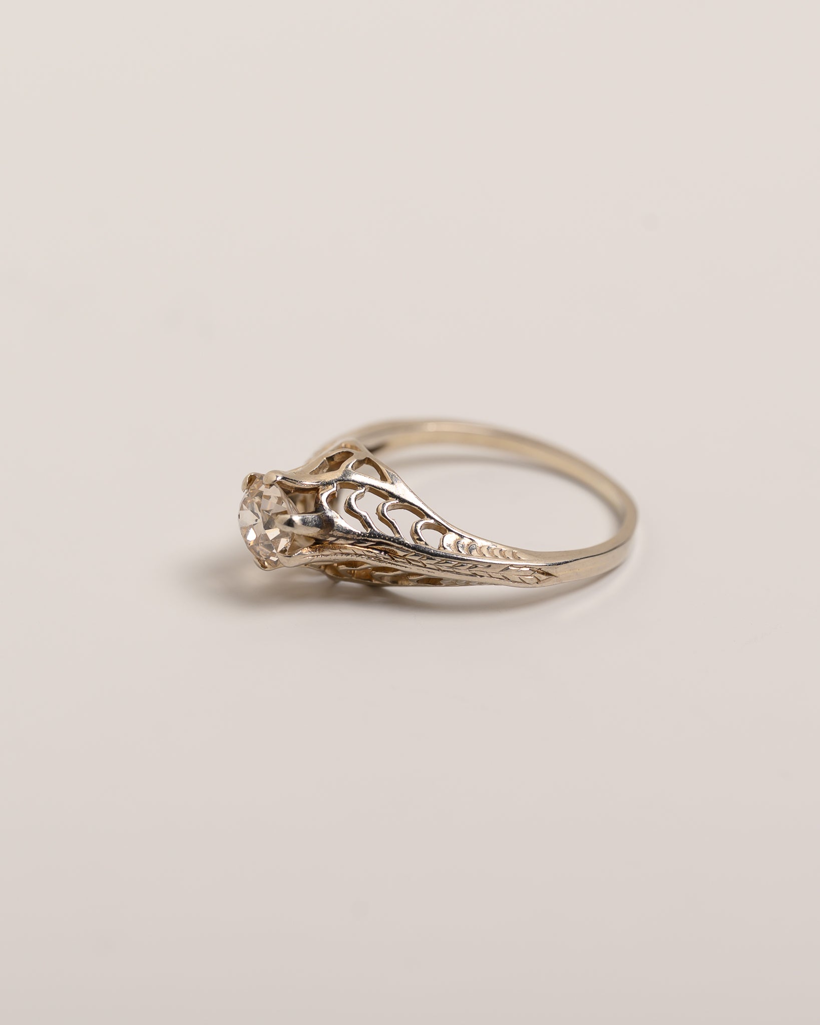 Genuine vintage platinum filigree ring featuring a spectacular 1-carat (approx.) Old Mine Cut diamond. This antique piece is romantic, rare, and ready to be a cherished engagement ring or statement piece.