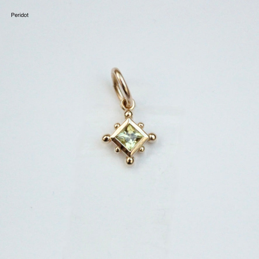 Despite the Aurora Charm's size it packs a punch to any necklace or bracelet styling for a fun pop of color. Featuring a 2.5mm gemstone of your choice, and a fun beaded design detail, think of the Aurora Charm as a wearable treat.