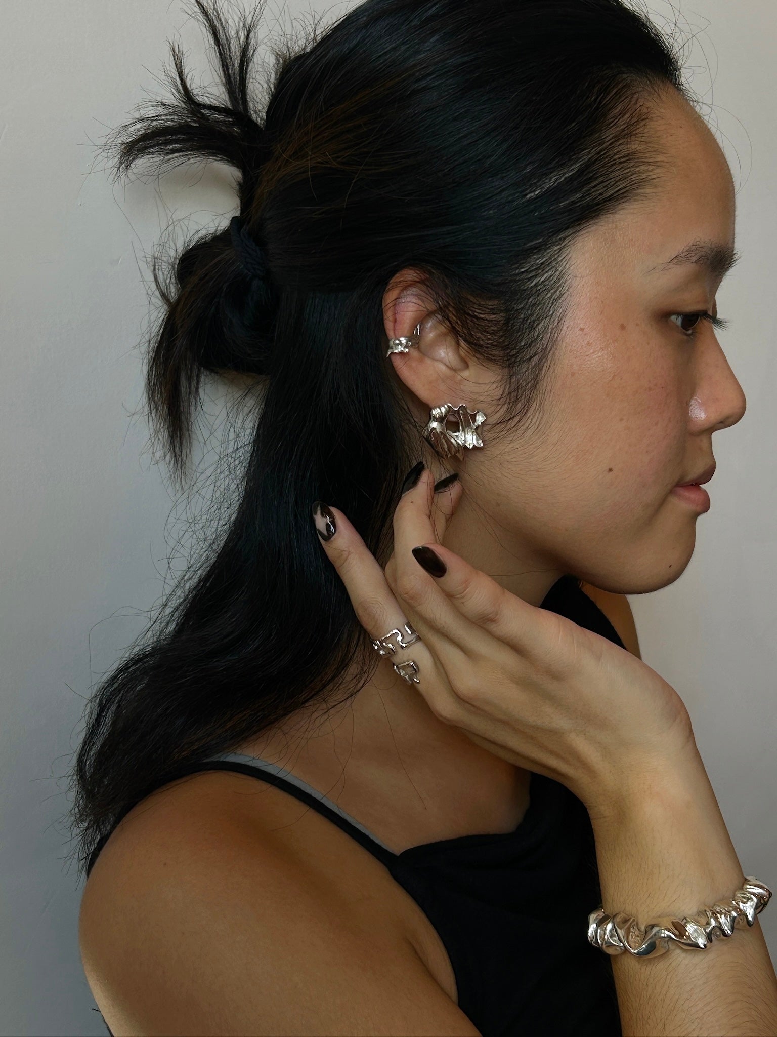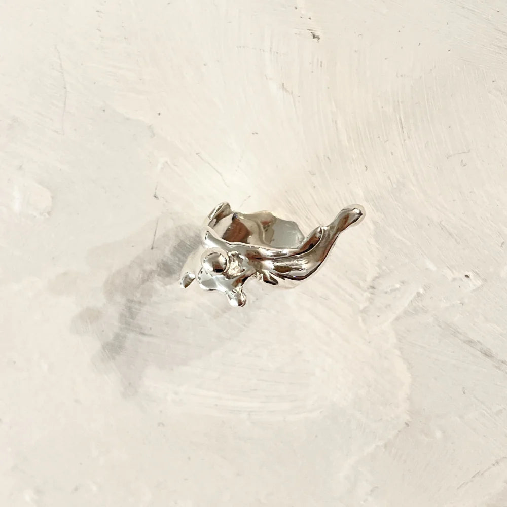 The Baby Boba Ear Cuff features liquid movement wrapped in a clockwise motion, with one little boba pearl in a tiny splash of bubble tea.