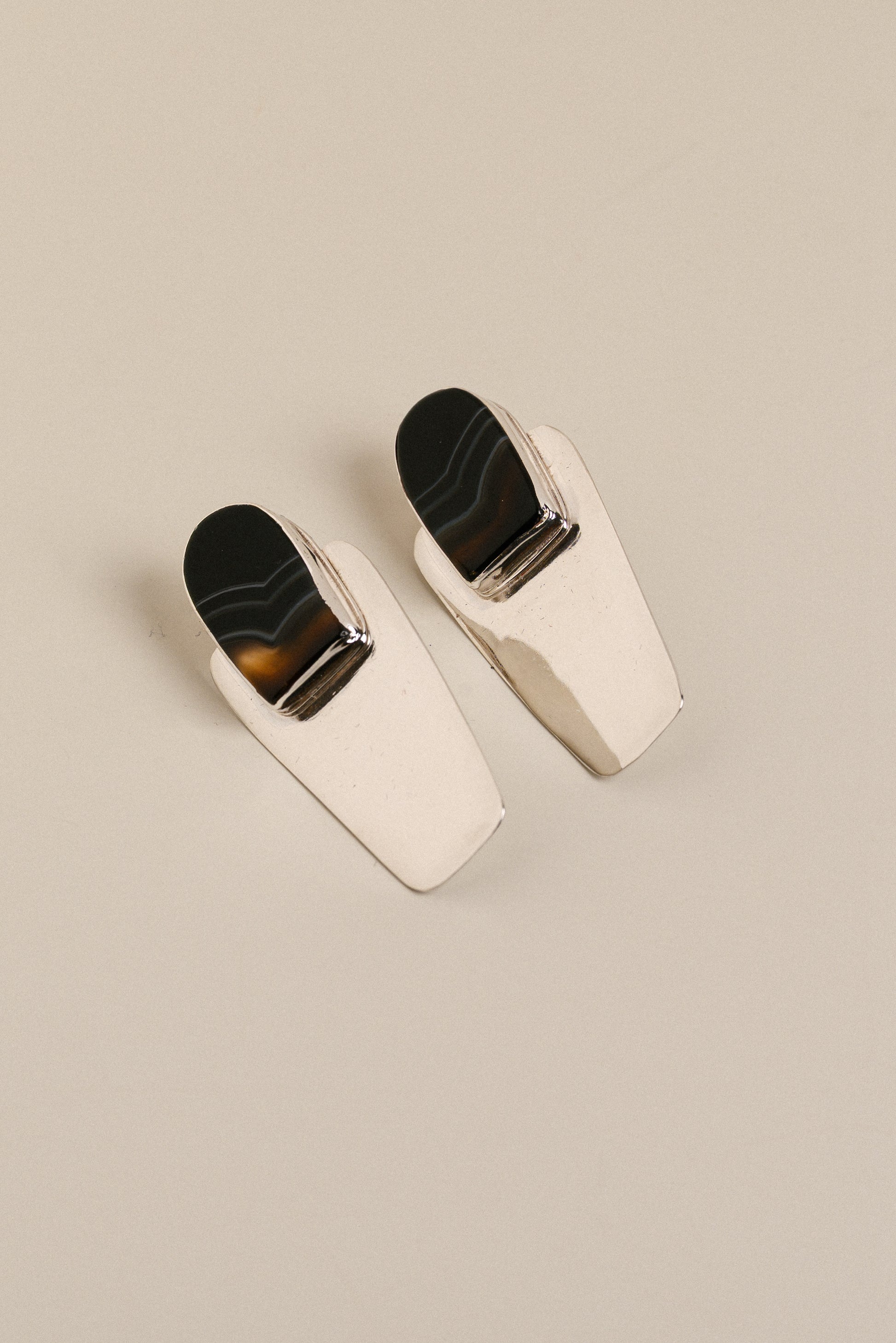 .925 sterling silver, hand fabricated with 18g earring post, banded agate stone