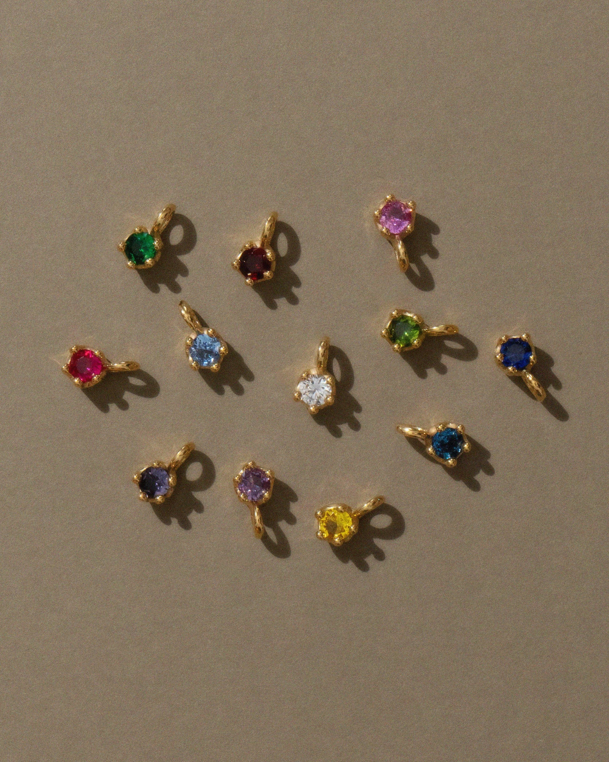 We handmade this pendant in wax to get an organic feel, with larger prongs giving a crown vibe around each stone. We've used lab-grown gemstones here, as a more sustainable option, casted in pure sterling silver.