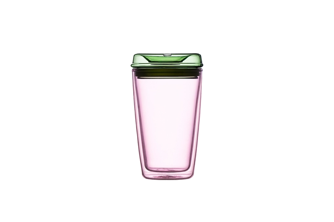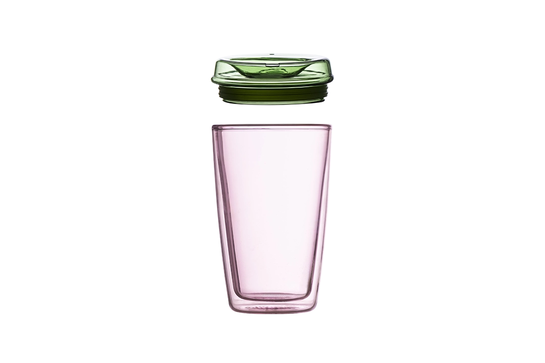 Open drinking spout, no spout cover, silicone seal, leakproof, heated-insulated and cold to touch, high borosilicate glass, double wall cup