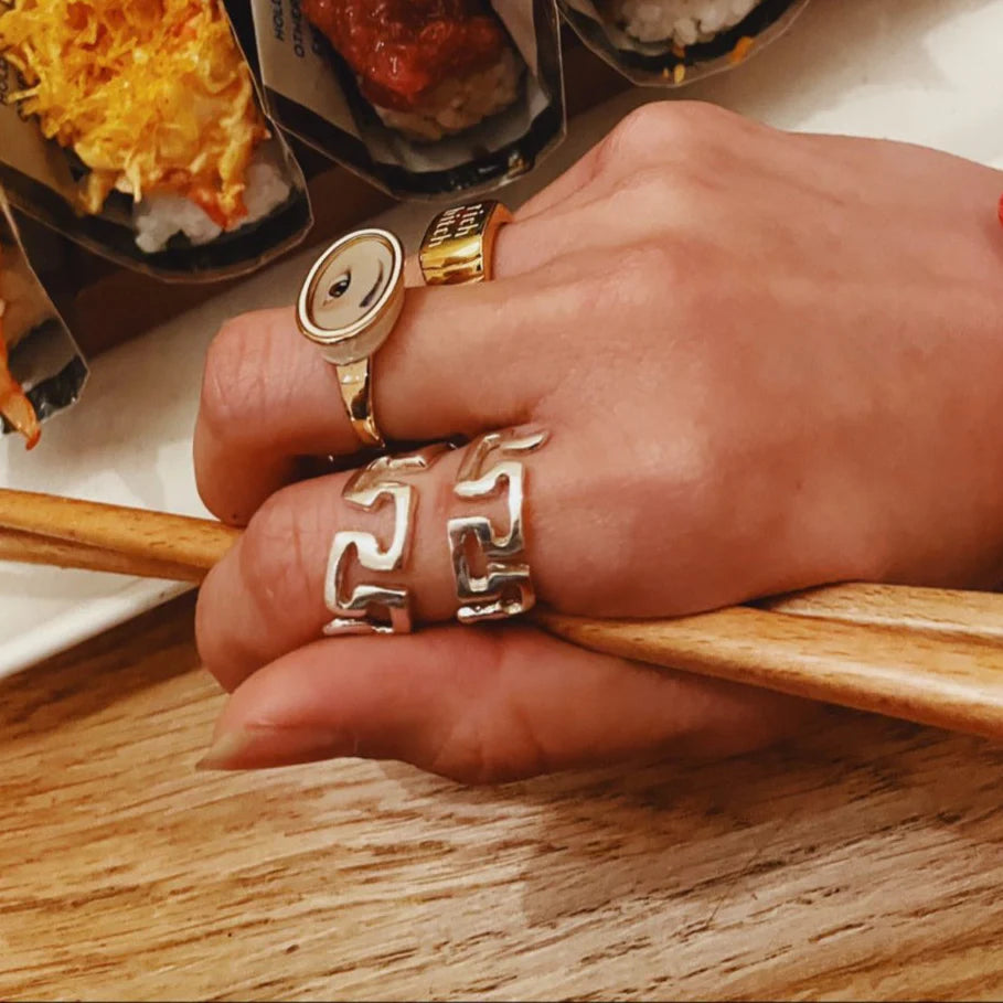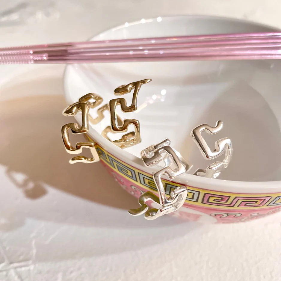 The Decorative Edge Spiral Ring is inspired by the mesmerizing and festive design motifs often found along the edges of Chinese porcelain dishes, a symbol of cultural significance and fond memories with loved ones.