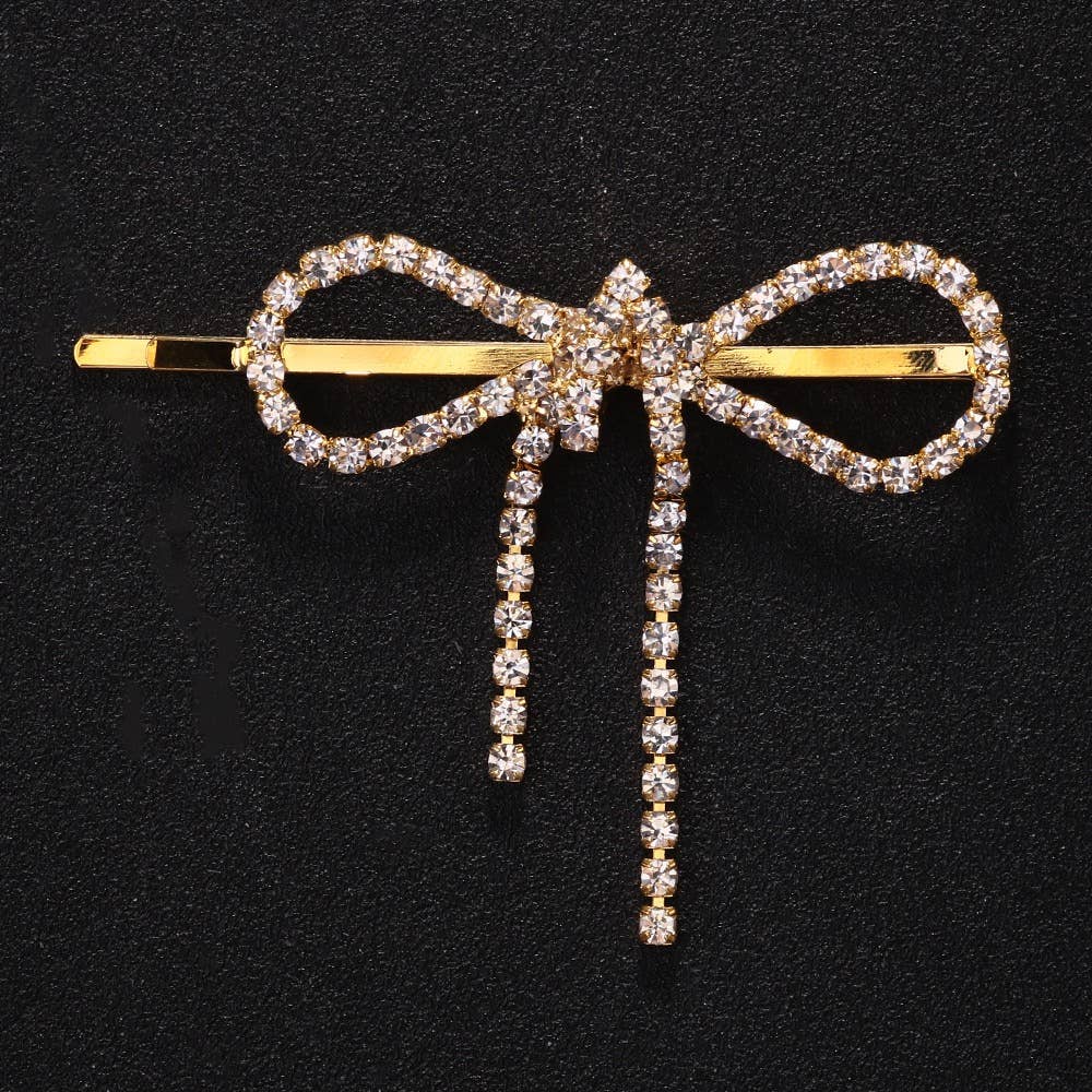Add a touch of timeless elegance to your hairstyle with our Bow Knot Rhinestone Hair Clip, available in both gold and silver. This delicate crystal barrette features a charming bow design adorned with sparkling rhinestones, making it the perfect accessory for any occasion.