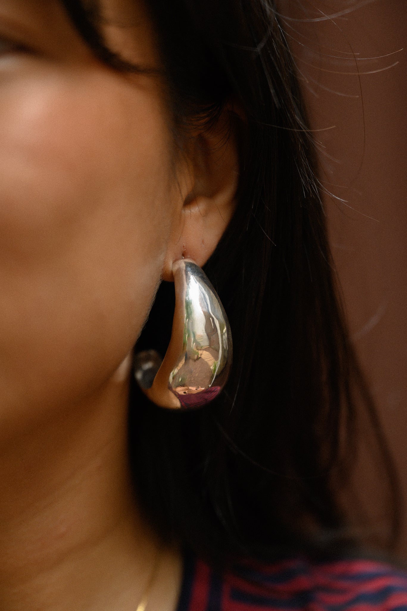 Big, bold, beautiful sterling silver hoop earrings. They're reflective and statement-making. These hoops are heavy (about 15grams each), so please be aware!