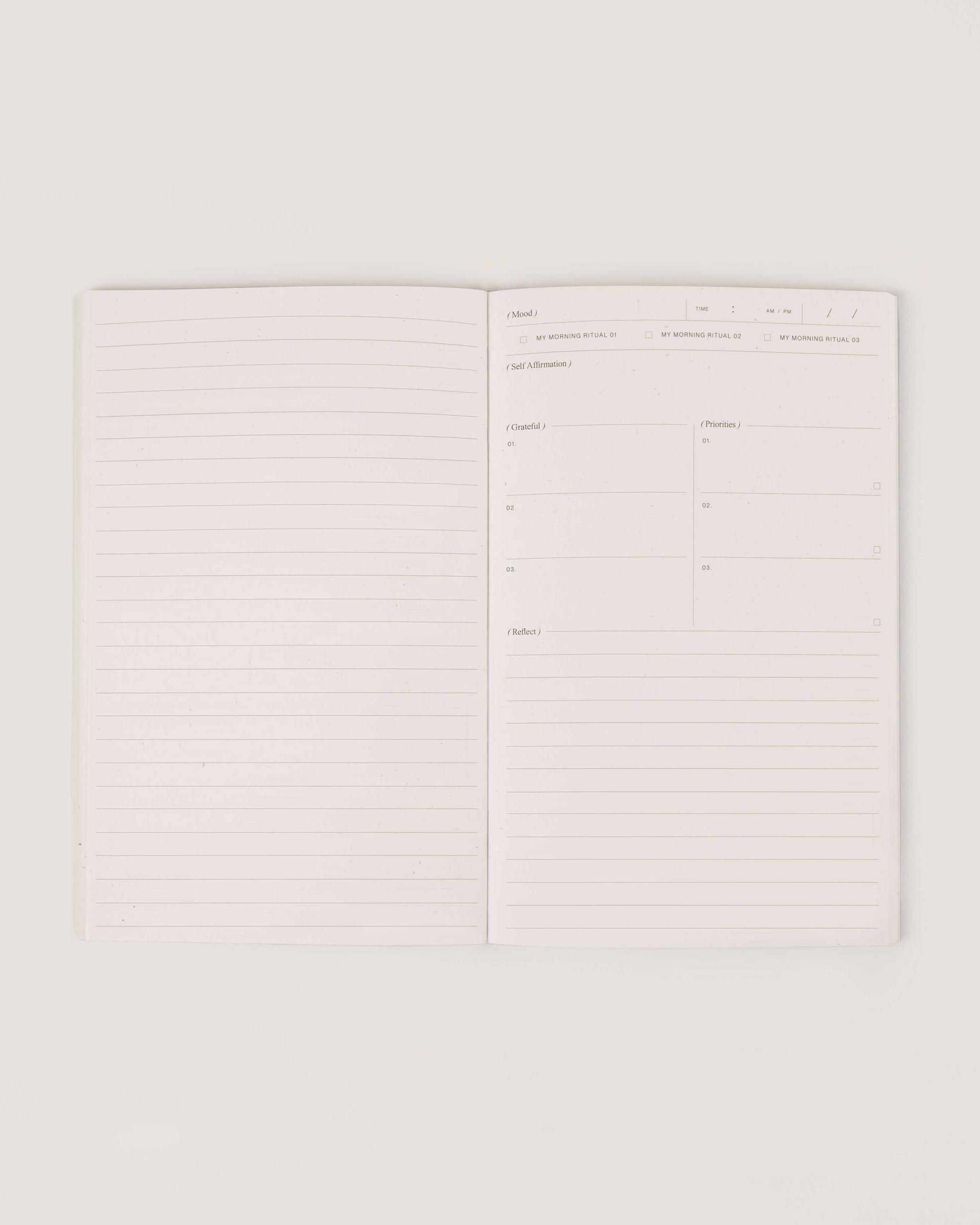 - 66 daily prompted journal entires for developing your ideal night routine.