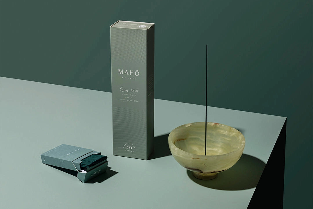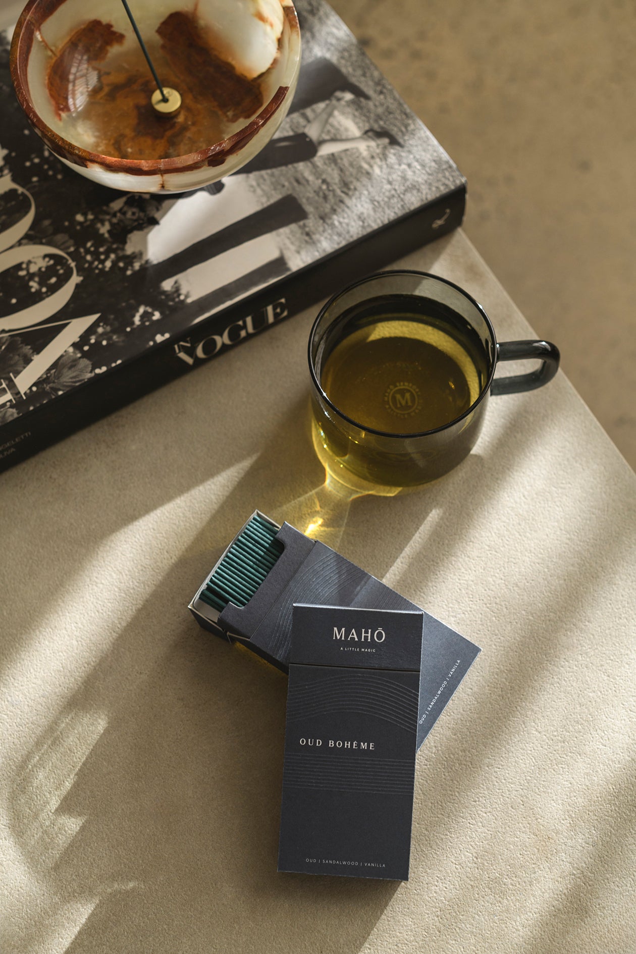 Light the tip of one incense over fire. Extinguish the flame by blowing or fanning. Incense should emit a glowing ember and fragrance with smoke. Return smouldering Sensory Stick to the MAHŌ Incense burner.