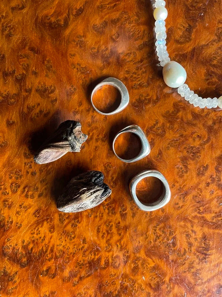 Solid sterling silver. Available in a size 8.